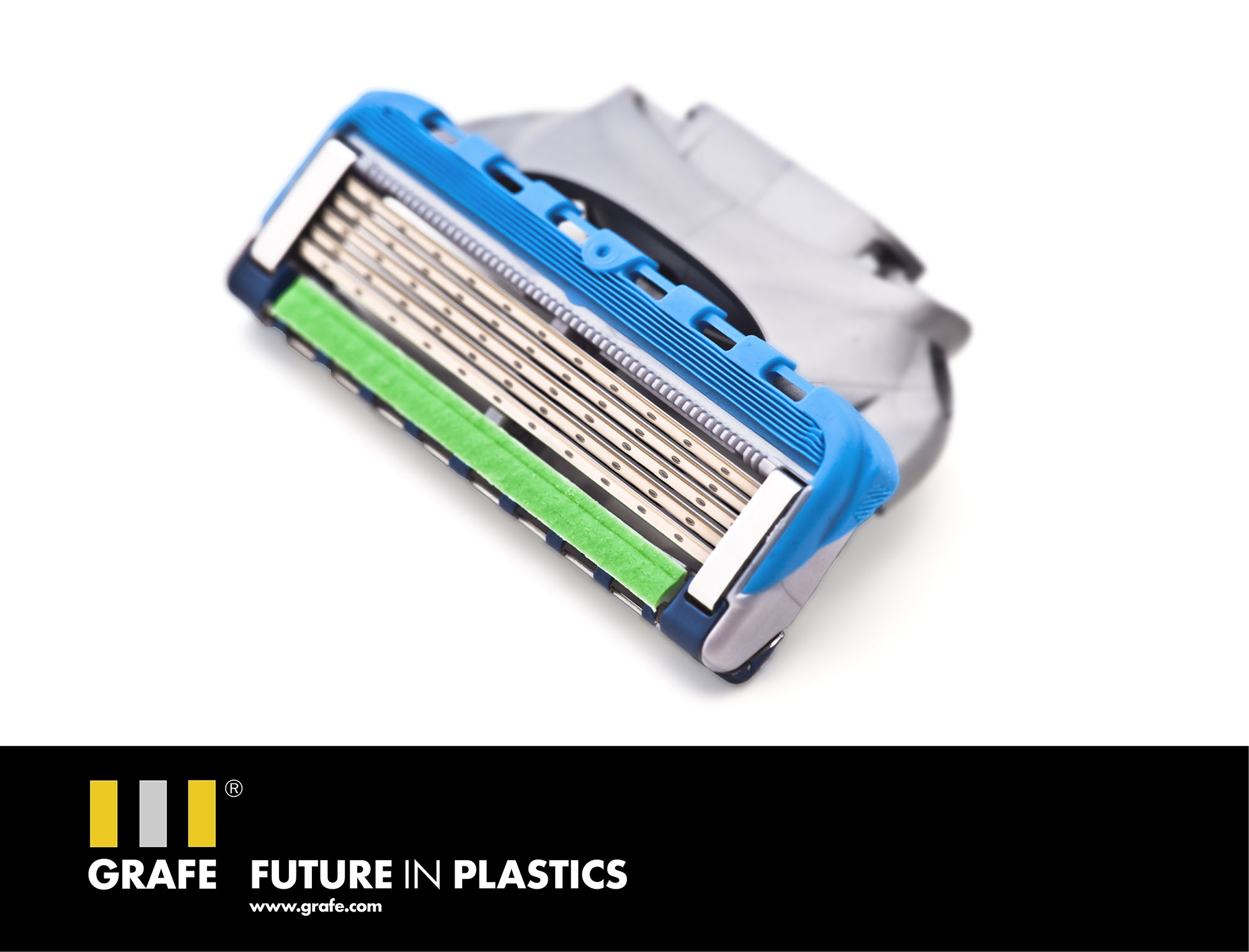 As Danny Ludwig, Head of Product Management at GRAFE explains, “Our selection of carrier polymers and processing technologies available for Compalen Slip Strip compounds results in a modular system allowing the design to be optimally adapted to function and, in this specific case, to fitting to the razor head. Our development team can also advise on the selection of additives and reconcile customer wishes with processing realities, so eliminating potential problems at an early stage on the road to serial market application.”