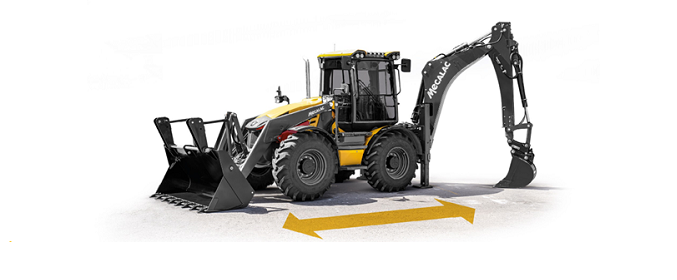 Since their creation in the 50s, all backhoe loaders are based on a traditional tractor design fitted with a loader arm at the front and an excavator boom at the rear. This leads the operator who sits in-between to turn around to switch from one function to the other – causing five significant drawbacks.