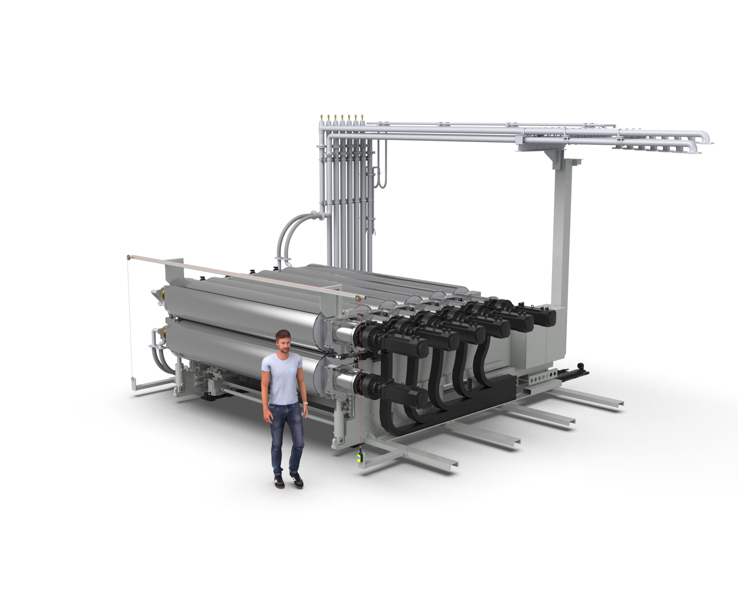 The Multi-Touch roll stack achieves its competitive edge in terms of flatness and flawless surfaces of the boards produced from PS or PP through the particularly long, intense contact between the smoothing rolls and the product, large number of smoothing gaps and the even cooling on both sides. For this purpose, every Multi-Touch roll stack comes with a pre-calibration and a recalibration unit. First, the extruded melt passes through the flat-sheet die into a roll stack consisting of two rolls for pre-calibration. This is followed by a recalibration unit which can be equipped with up to seven rolls, depending on specific product requirements. The long contact between the semi-finished product’s surface and the cooling rollers and the uniquely homogeneous cooling of the board ensure perfect dimensional stability plus high-quality visual attributes, and thus a wide range of applications for the products.