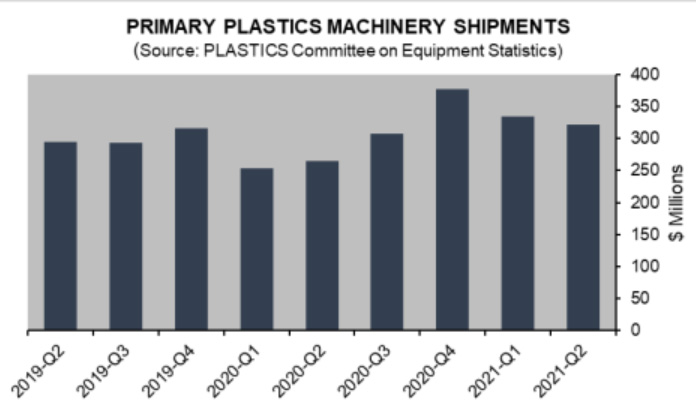 “Until the supply chain issues are resolved, and production lead times return to normal, expect to see fluctuations in quarterly shipments of plastics machinery. Nevertheless, the outlook for plastics machinery in the second half of the year is positive,” said Pineda.