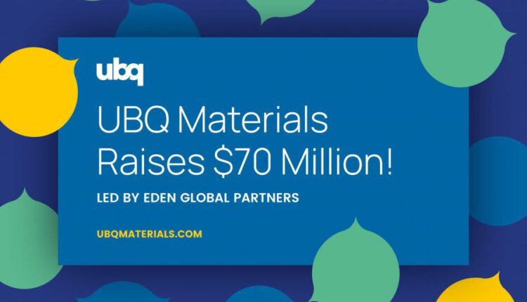 UBQ Materials Raises $70 Million in Funding, Led by Eden Global Partners