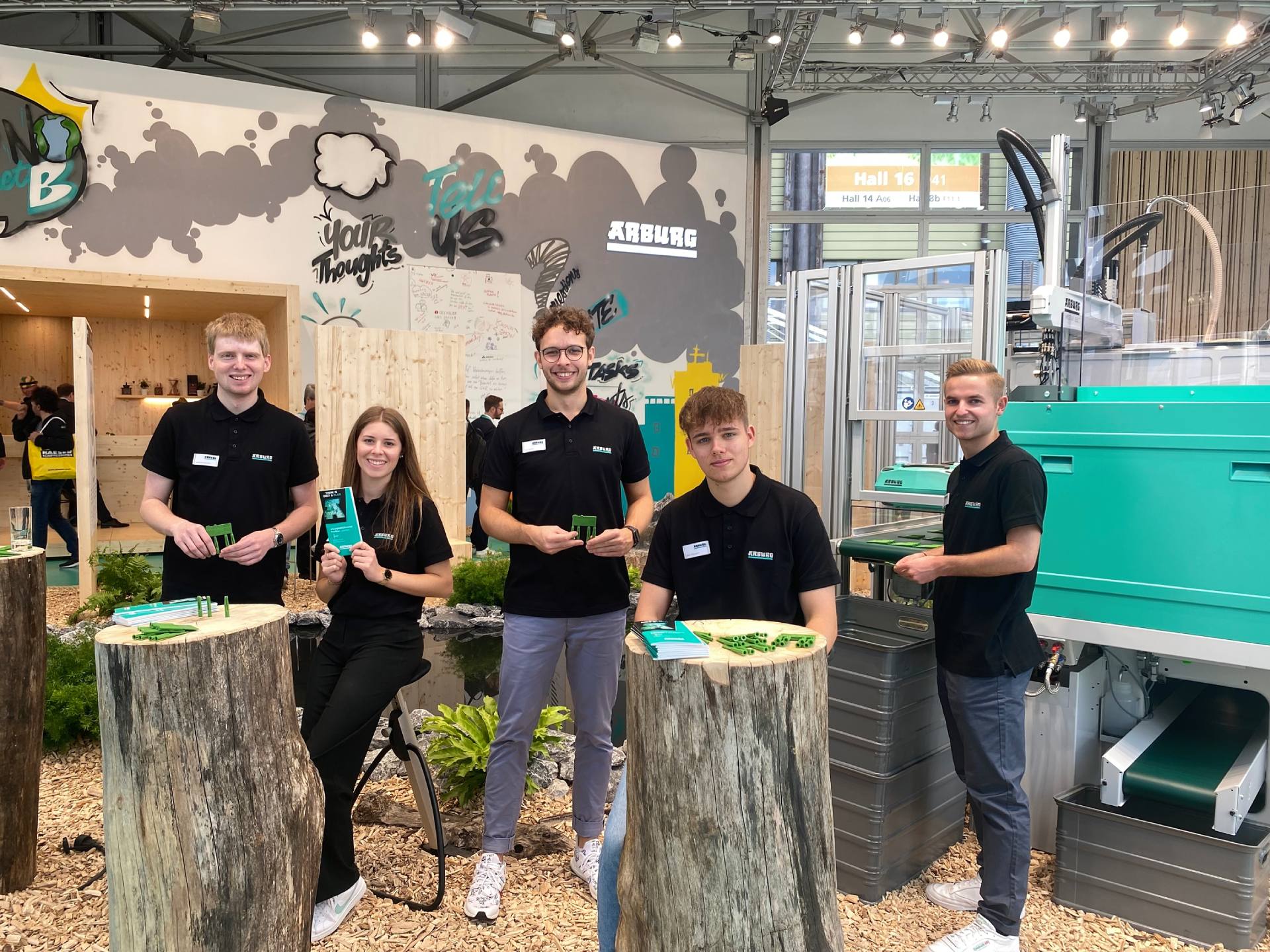 Visitors to the arburg Green world pavilion were able to gain an impressive insight into how Arburg, with its “Plan A”, is playing its part in solving a global problem affecting society as a whole. It was there that Arburg trainees not only “rocked” the pavilion but also held numerous discussions on the future of plastics as a recyclable material – with young visitors in particular. Talks were also held with experts from science and industry. And an electric Allrounder produced “Greenline” anchors from Fischer using plastic based on castor oil.